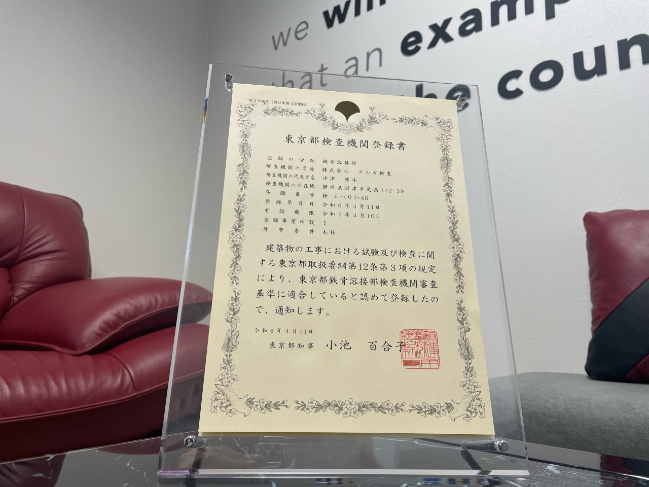 当社は、「東京都鉄骨溶接部検査機関」です。